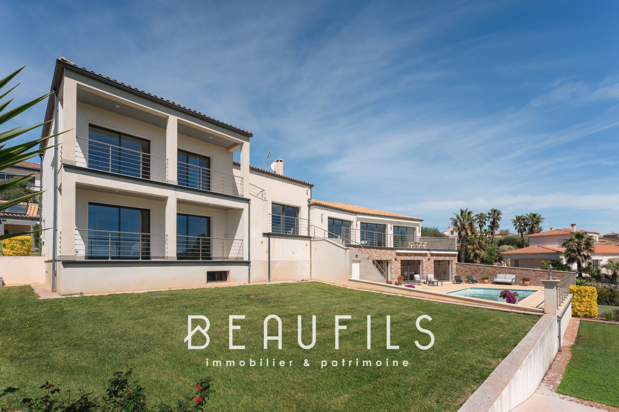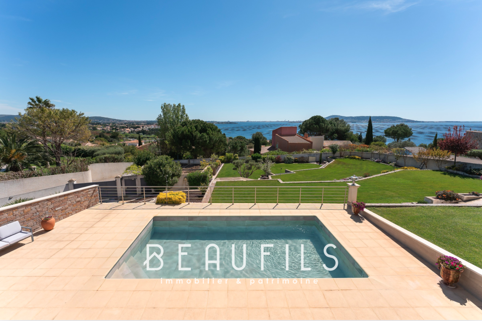 EXCLUSIVITE - A 15 minutes seulement de SETE et du très renommé MONT SAINT CLAIR, à 30 minutes de MONTPELLIER et de l'aéroport international, sur les hauteurs de l' ETANG DE THAU, BEAUFILS immobilier & patrimoine vous présente cette très belle villa de 462 m2 habitables sur 3000 m2 de terrain avec garage de 110 m2 et piscine. Nichée sur les plus hautes marches de la colline qui surplombe l'étang et orientée plein sud, vous allez profiter d'un tableau magique qui change tout au long de la journée au gré des saisons, de la luminosité et du soleil qui se reflète à la surface de l'eau telle une véritable rivière de diamants. Il faut le voir pour le croire ! Outre la vue époustouflante depuis chaque pièce de la villa, cette merveille est un véritable concentré de prestations haut de gamme : Plancher chauffant et rafraichissant, climatisation réversible gainable avec double pompes à chaleur, menuisieries aluminium oscillo-battantes K-LINE et TECHNAL, fermeture centralisée des volets roulants en aluminium, ascenseur OTIS, alarme avec 12 caméras de surveillance, arrosage automatique avec forage à 38 mètres, aspiration centralisée, hammam, SPA, adoucisseur, eau chaude sanitaire solaire, cuisine PORCELANOSA GAMMA DECOR, cheminée insert PHILIPPE de 23 KW, placards et dressing sur mesure, les équipements ne manquent pas. Toute la technologie est pilotable à distance via smartphone. La construction a été pensée dans les moindres détails pour vous offrir un confort inégalable. PRECISION SUR LE POTENTIEL : Vous pourrez construire une seconde villa de 300 m2 d'emprise au sol et la détacher de la propriété actuelle ! Contact Xavier 06 02 17 22 40 Siret 831 872 304 RCS MONTPELLIER. Consultez nos honoraires à l'adresse suivante https://www.xbimmoinvest.com/honoraires.pdf